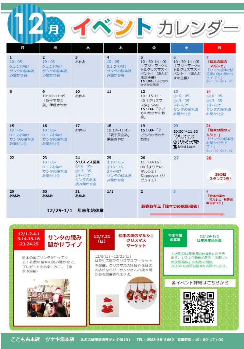 *11月の29の日は、「サンタの読み聞かせライブ」が開催されているため、スタッフの読み聞かせはありません。