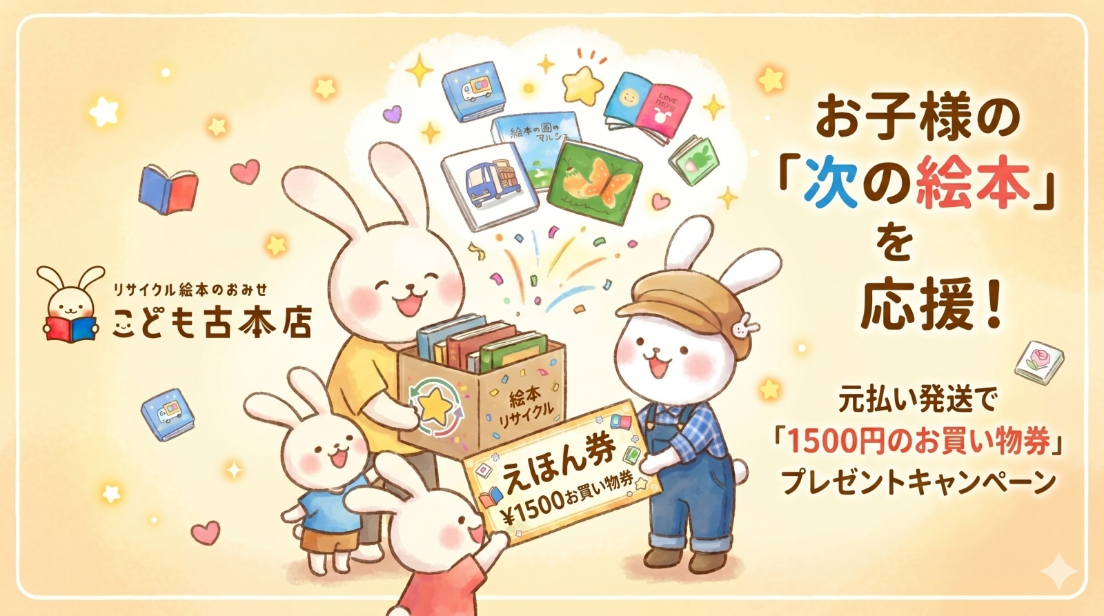 お子様の「次の絵本」を応援!元払い発送で「1500円のお買い物券」プレゼント