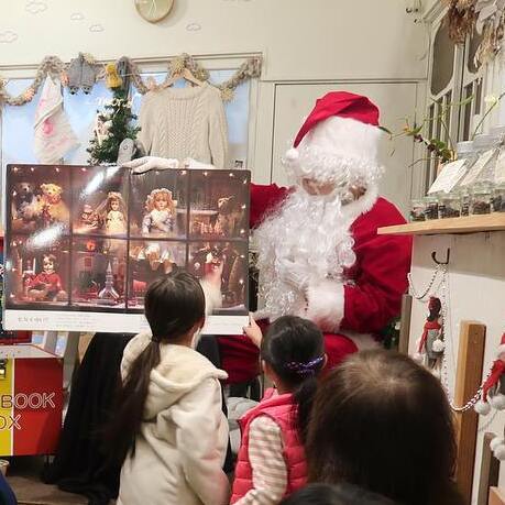 とっても陽気で絵本が大好きなサンタさんの読み聞かせライブ。 小さなプレゼントがもらえるかも?