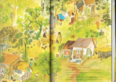 ごちそうが食べたい一心で、人間に変装してやってきたきつねと、それを知っていながら、だまされたふりをする村人たちとのやりとりをユーモラスに描いたスリランカの絵本。