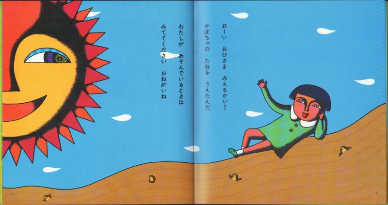 絵本の状態:少々やけ。表紙に大きな折れ。裏表紙にしみ。背付近にしわ多し。内容は概ね良好。