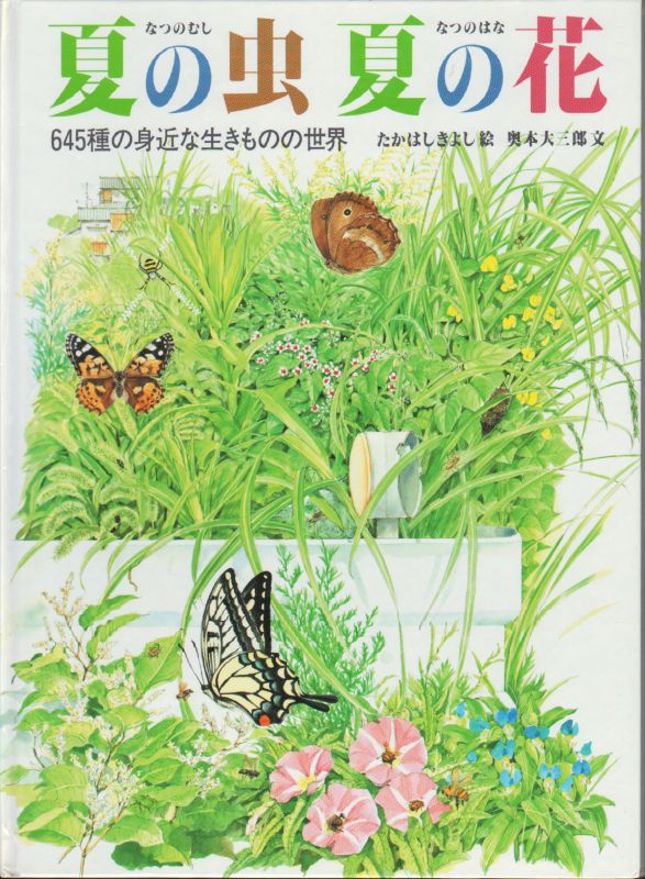 夏のある日の公園、道ばた、草むら、田んぼ、畑、林など、身近な場所で、さまざまないとなみをつづける虫や花、645種を描いた、新しい形式の図鑑です。