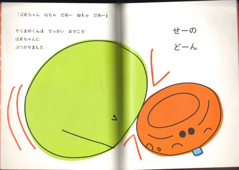 絵本の状態:全体的に使用感あり。表面、背にしわ多し。背にわずかにしみ。内容にしわ。角にわずかに折れ。