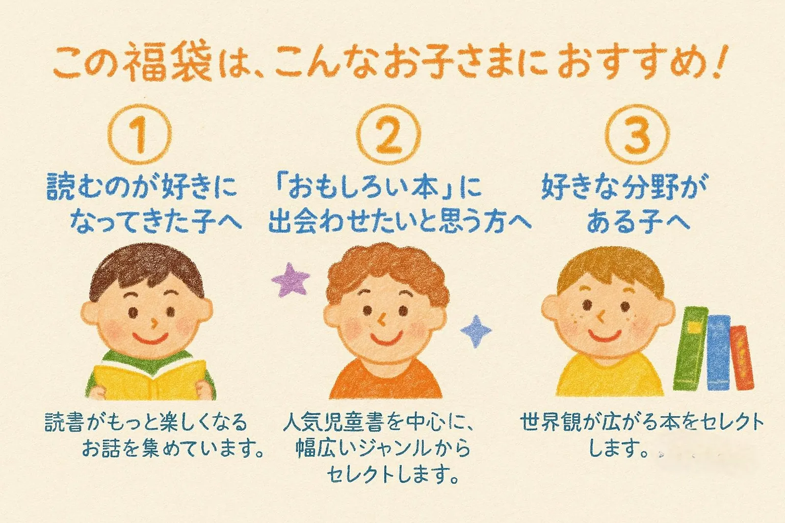 むしろ、そういったお子さまにも「楽しく読める1冊との出会い」をお届けしたくて、この福袋をご用意しています。