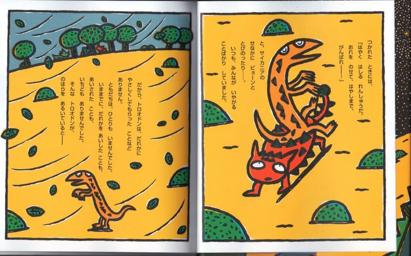 ひとりぼっちのきょうりゅうが、おいしそうなたまごをみつけてだいじにかかえているうちに、たまごがかわいくなってきて……。