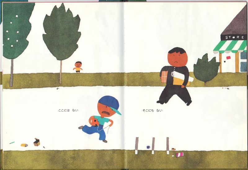 おっと、落し物。どこでなくしたんだろう。ぼくのトラックの半分、見ませんでしたか。かわいいリボンを拾って交番へ届けると、あっ、ぼくのトラックが届いていました。くれぐれも、落し物にご注意。落し物はもよりの交番へ。