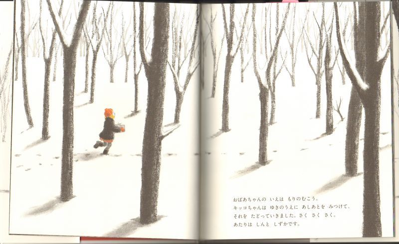 雪の朝、キッコちゃんは森のむこうにあるおばあちゃんの家へケーキを届けに出かけます。