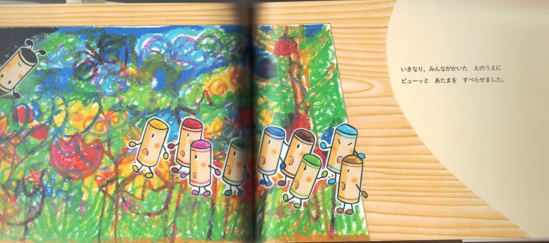 クレヨン達は、真っ白な画用紙を見つけて大喜び!チョウ、お花、木…。みんな、つぎつぎと描いています。ところがくろくんだけは仲間に入れてもらえません。でも…。記念すべきシリーズ第1作!