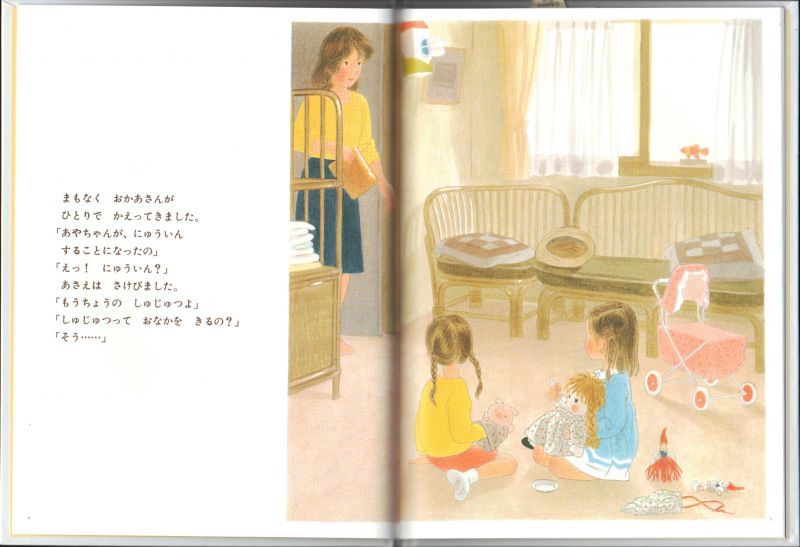 突然、妹が盲腸の手術で入院することになりました。ひとり残されたあさえの気持と、妹へのほのぼのとした愛情をみごとに描いた物語です。林明子の表情豊かな絵が心に残る傑作です。