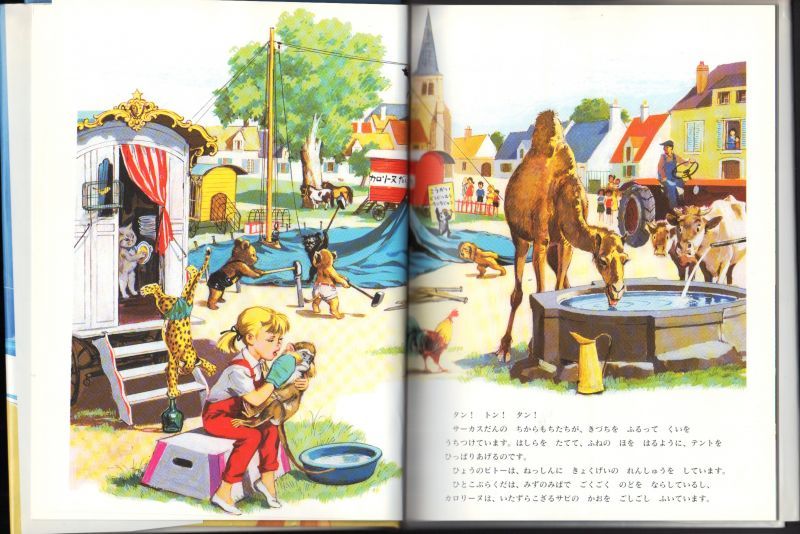 絵本の状態:カバーなし。裏表紙にわずかな凹みきず。ページ縁にわずかに焼けがありますが、全体的にきれいです。