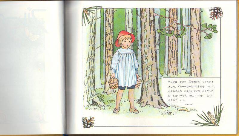 ◆おかあさんの誕生日の贈り物にしようと、ブルーベリーとこけももを摘みに出かけた プッテは、こびとのおじいさんに出会い、ブルーベリー森へとさそわれます。そして、魔法でこびとのおじいさんぐらいに小さくなったプッテのブルーベリー森で見たこと、経験したことは……。プッテは、あまりにすばらしく楽しかったので、帰る時間がきたとき、もっともっとこの森であそんでいたいと思いました。でも家にもどったときプッテは、おかあさんにあげるブルーベリーとこけももの実のいっぱいはいったかごをちゃんともっていましたよ。