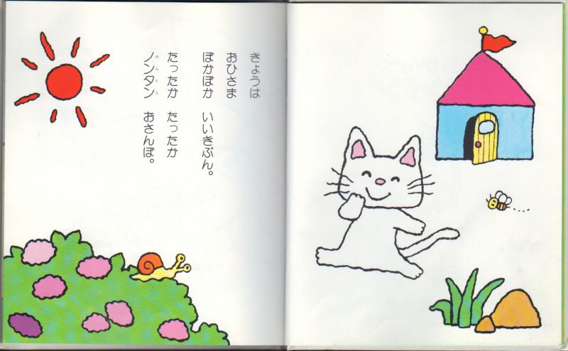 絵本の状態:カバーなし。表面にきず、擦れ。本文にしわ多し、わずかによごれ。