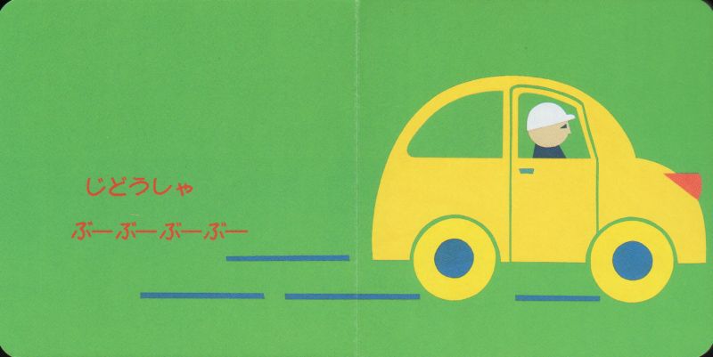 自動車は「ぶーぶーぶーぶー」。イヌは「わんわんわんわん」、水は「じゃあじゃあじゃあ」、紙は「びりびりびり」。