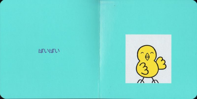 いろんな動物が順々に「こんにちは」そして「ばいばい」と手をふります。心地よいくり返しが、動物たちとの親近感を深めます。