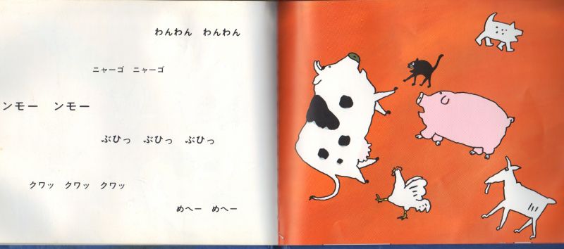 鳴きごえをたのしむファーストブックです。いぬ、ねこ、ぶたと次々にふえていく動物たちのにぎやかでナンセンスな味わいの絵本。