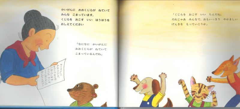 絵本の状態:カバーなし。表面にきず、擦れ。角に少々潰れ。本文に少々しわ。