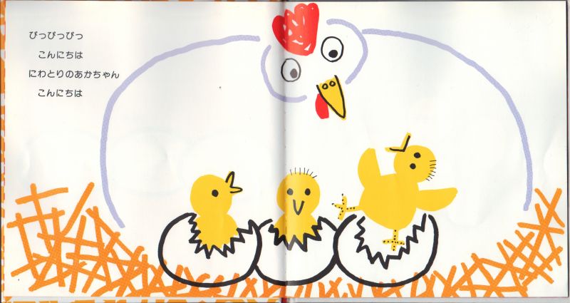 「たまごのなかでかくれんぼしている あかちゃんはだあれ? でておいでよ」と呼びかけると、卵の中から次々と赤ちゃんが出てきます。リズミカルな文と、ユーモラスな絵が楽しめます。