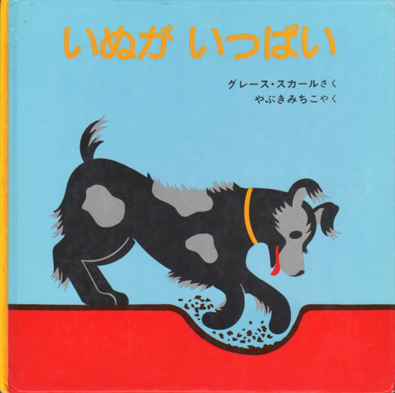 犬を目にしては「ワンワン!」とうれしげに声をあげるあかちゃん。絵本のなかにいっぱいみつけて、きっと大喜び。単純化された、落ちついた色調の絵です。