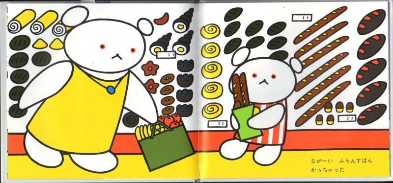 おかあさんとの買い物は、子どもにとって楽しみのひとつ。しろくまちゃん親子の買い物は、手紙をポストにいれるところから始まります。くだものやフランスパンを買うのですが、大きなケーキは「買って!買って!」と泣いても買ってもらえません。読者の子どもが、クスリと共感の照れ笑いをするところです。すべり台で機嫌をなおして、うちに帰ったしろくまちゃんです。