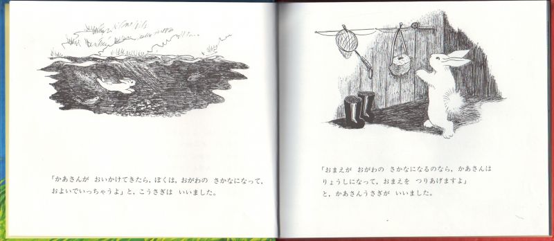 ウサギの母子の間に交わされるほのぼのとした会話の中に理想の母子像が浮かびあがります。